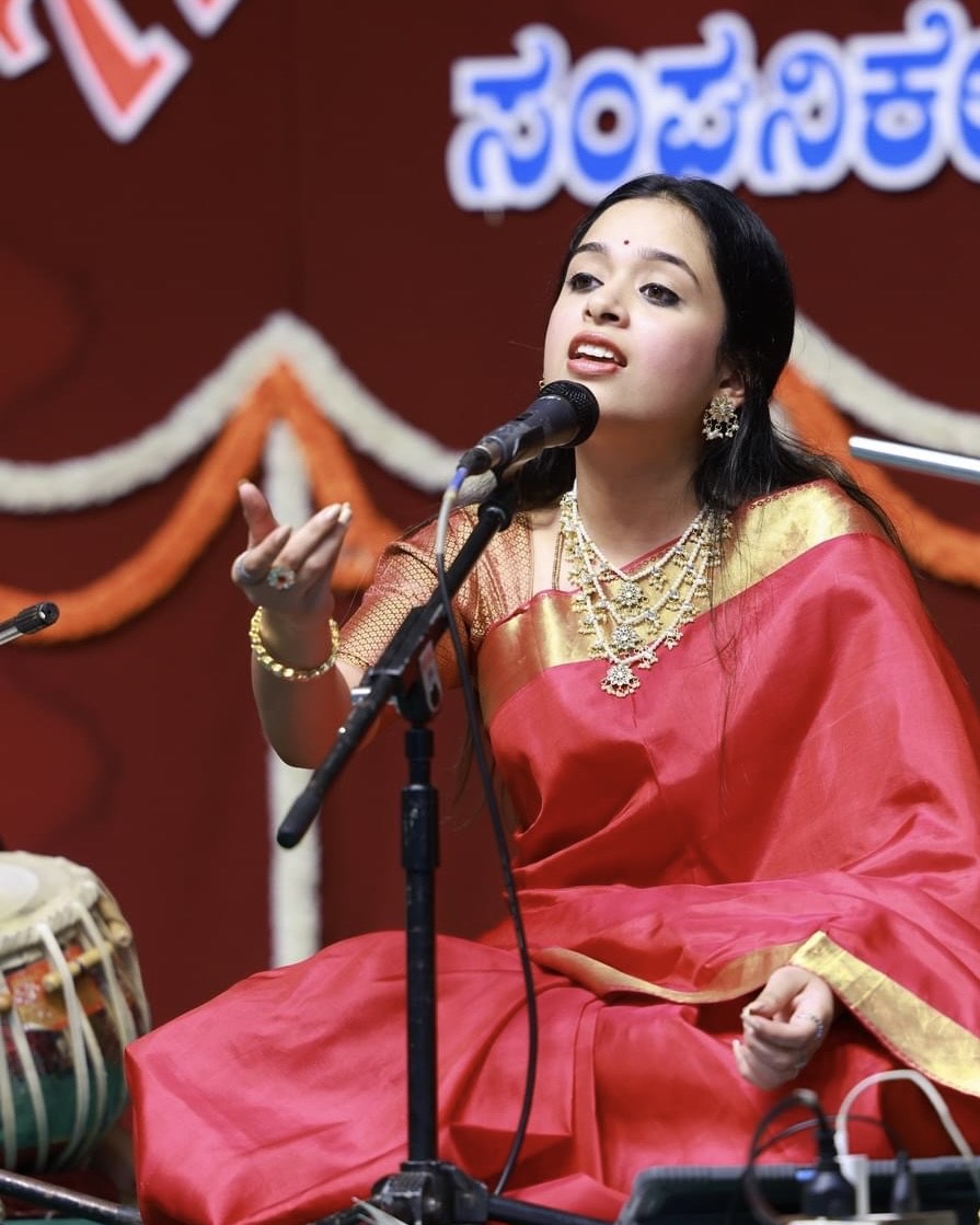I began my formal music lessons from him from the age of 5, and he is my main guru. Learning from him wasn’t just about notes and compositions, it was about understanding the deeper purpose of music, especially in the context of bhakti and Haridasa Sahitya. Along the way, I’ve also had the privilege of learning many other facets from Vidushi Sandhya Shankar and Vidwan Srinivas Prasanna and I’m currently learning from Vidwan Pradesh Achar. Each of them has added a unique layer to my understanding and approach to music.
